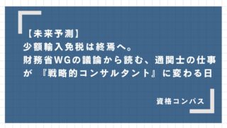 キャリアと実務 【未来予測】少額輸入免税は終焉へ。財務省WGの議論から読む、通関士の仕事が『戦略的コンサルタント』に変わる日 1万円以下の少額輸入免税は終わるのか?財務省の議論を基に、制度の未来を予測。越境ECの拡大で変わる通関士の仕事の本質を徹底考察。未来の『戦略的コンサルタント』としての役割が見えてきます。 2025.08.29 キャリアと実務