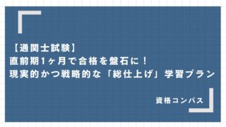 試験対策・勉強法 【通関士試験】直前期1ヶ月で合格を盤石に!現実的かつ戦略的な「総仕上げ」学習プラン 試験直前期1ヶ月で合格を掴む!通関士試験の「総仕上げ」学習プランを週別に具体的に解説。過去問の質的演習、模試のデータ分析、体調管理まで、あなたの努力を合格に結びつける現実的な戦略を提示します。 2025.08.31 試験対策・勉強法