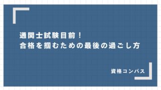 試験対策・勉強法 通関士試験目前!合格を掴むための最後の過ごし方 通関士試験目前。不安と焦りでいっぱいのあなたへ。本番で実力を100%発揮するための最後の過ごし方とメンタル術を解説します。もう迷いはありません。この記事を読んで、自信を持って本番に臨みましょう。 2025.10.01 試験対策・勉強法